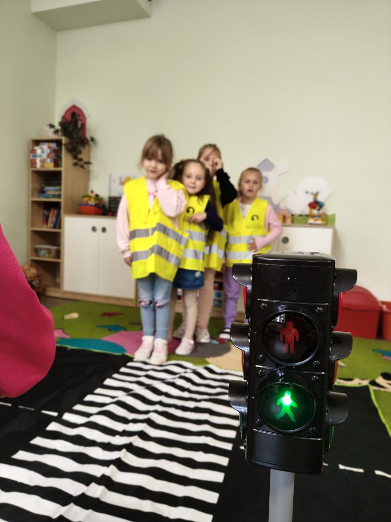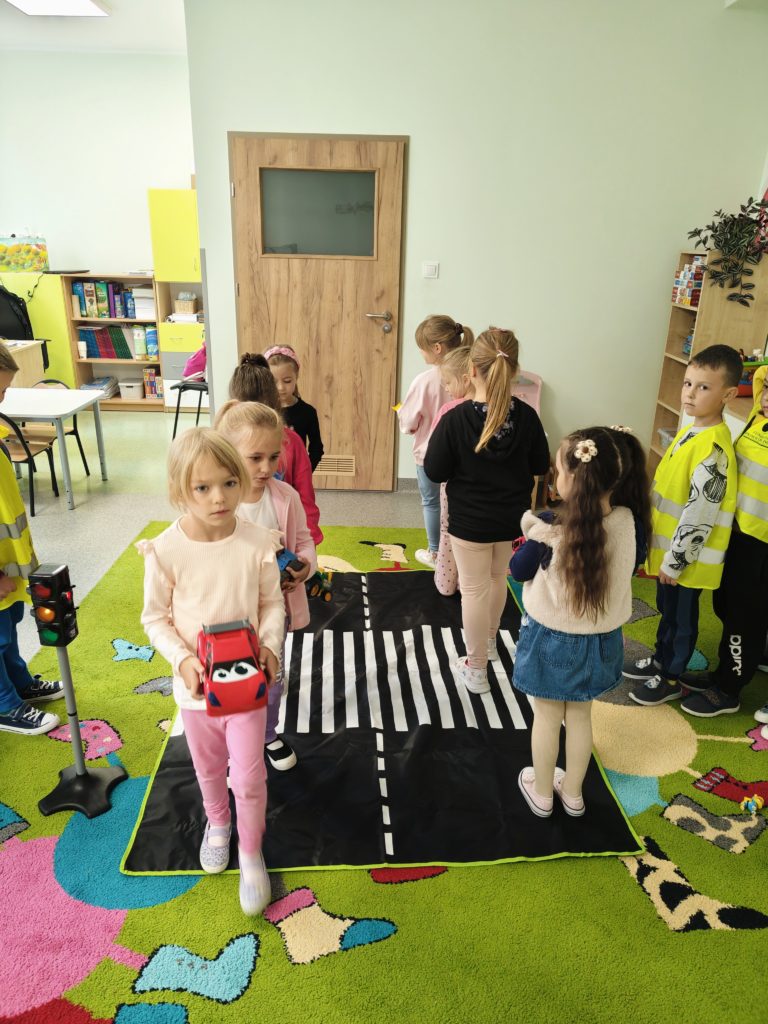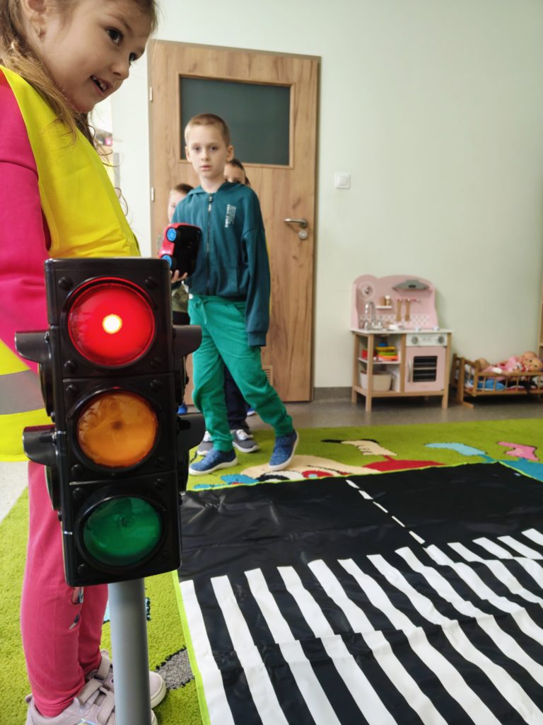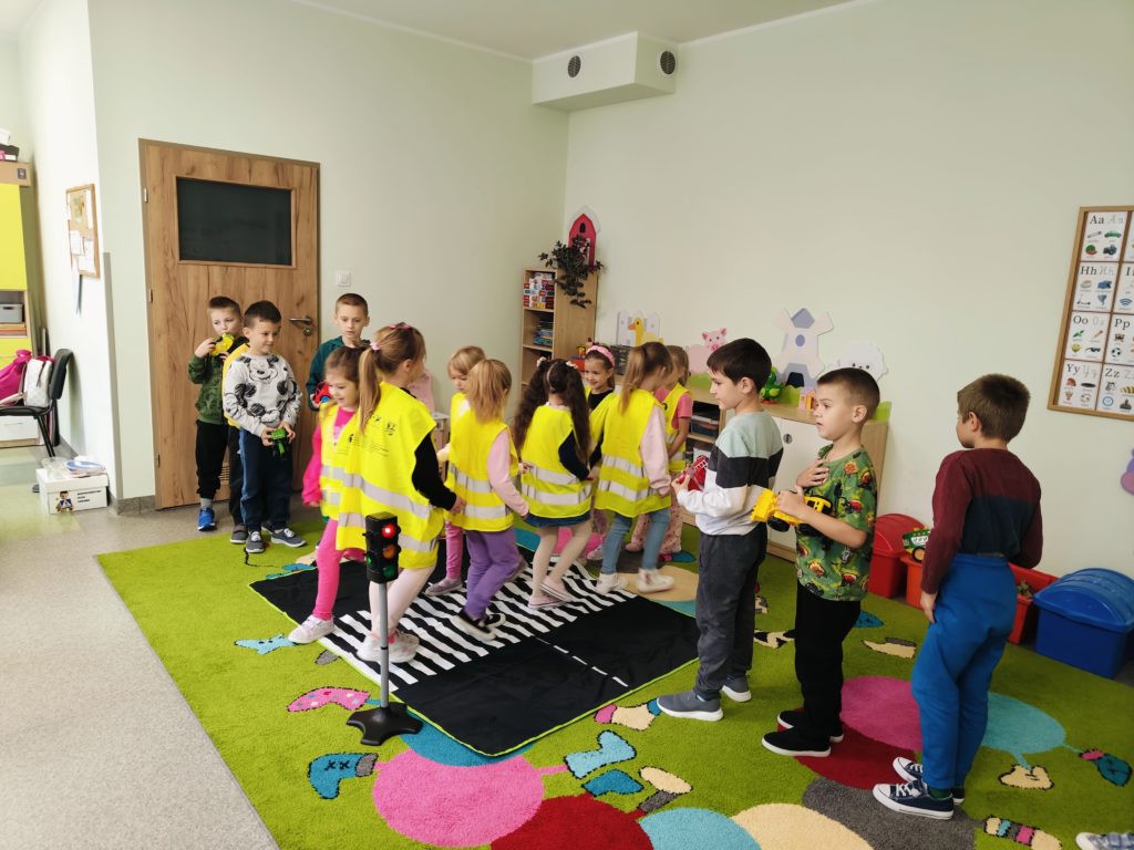 Podczas zajęć dzieci zamieniały się w pieszych i kierowców, a pomocą była nam mata z ulicą i sygnalizator świetlny. Dzięki temu dzieci  mogły w praktyce zobaczyć, jak działa ruch drogowy i dlaczego tak ważne jest, by przestrzegać zasad i zwracać uwagę na światła. Nauka przez zabawę sprawiła, że dzieci świetnie się bawiły, a jednocześnie zdobyły bardzo potrzebną wiedzę.