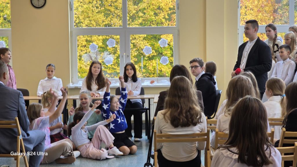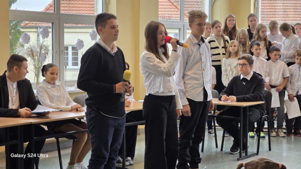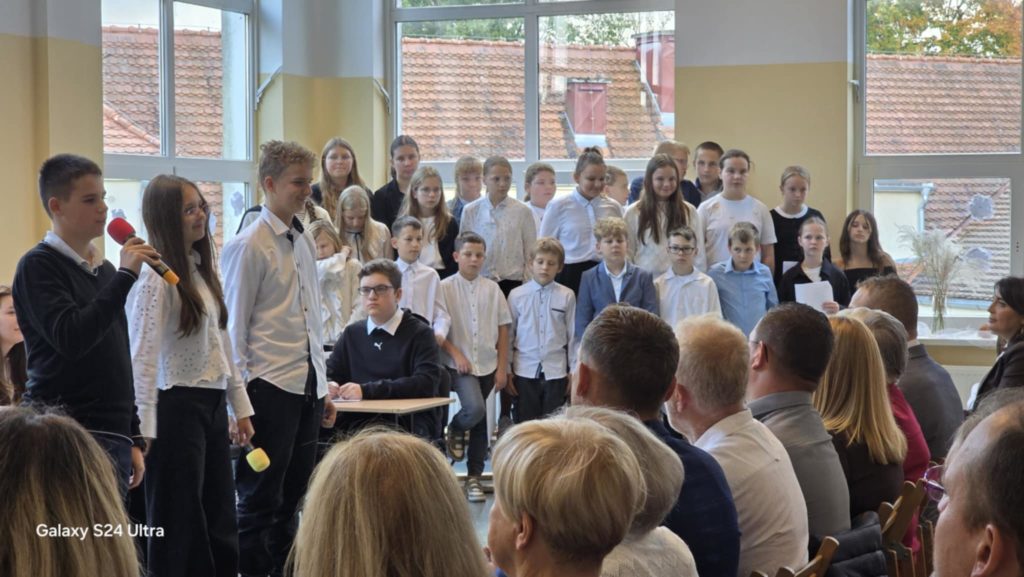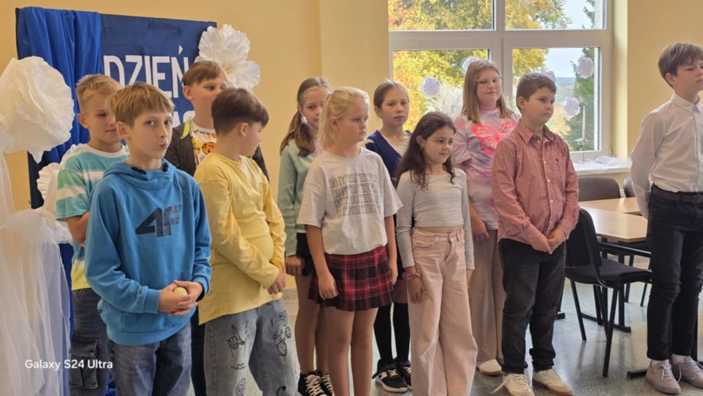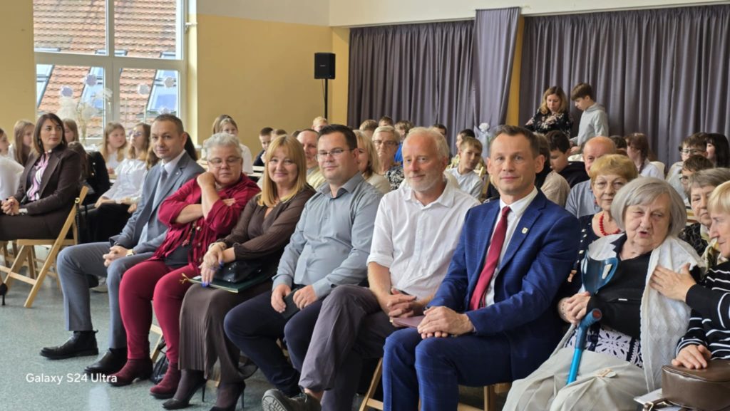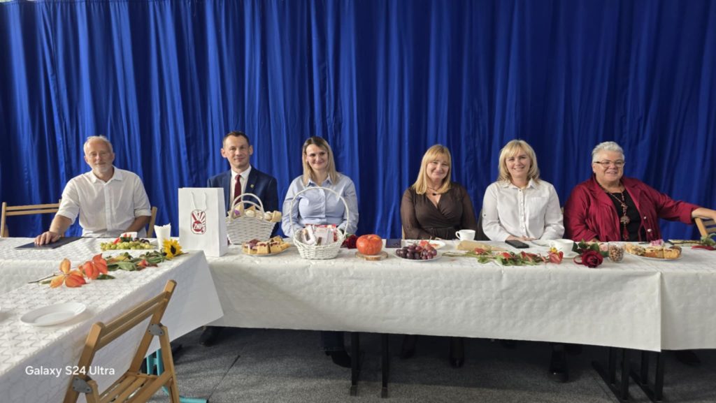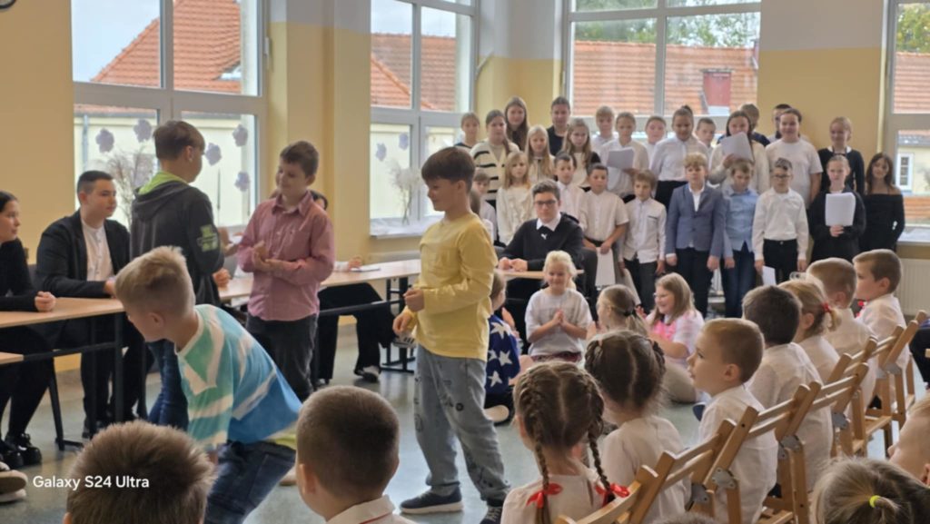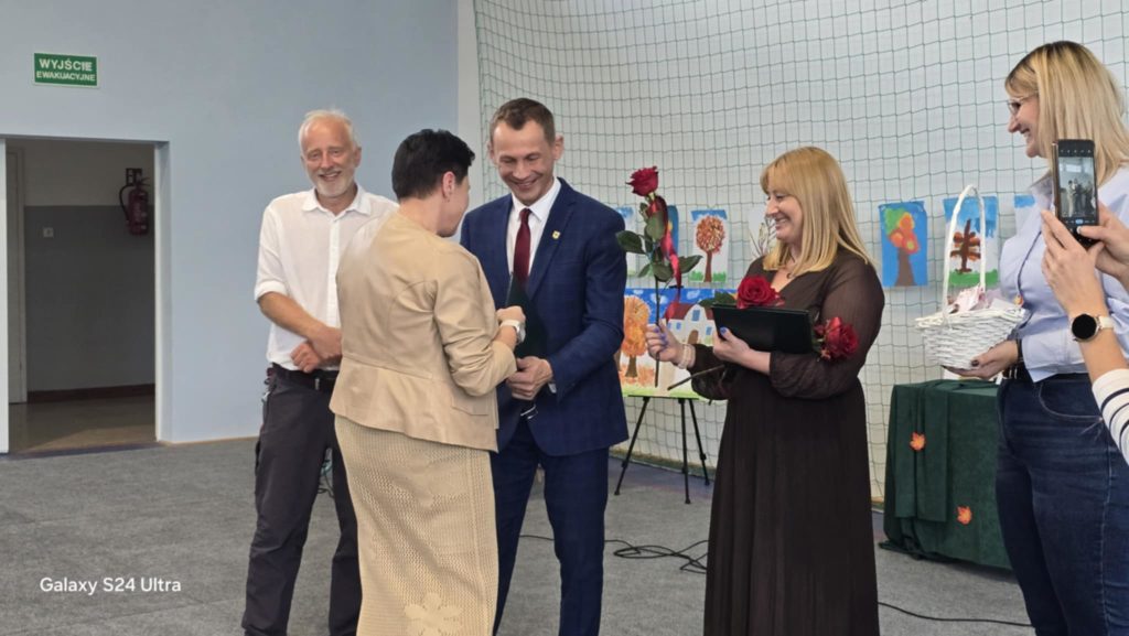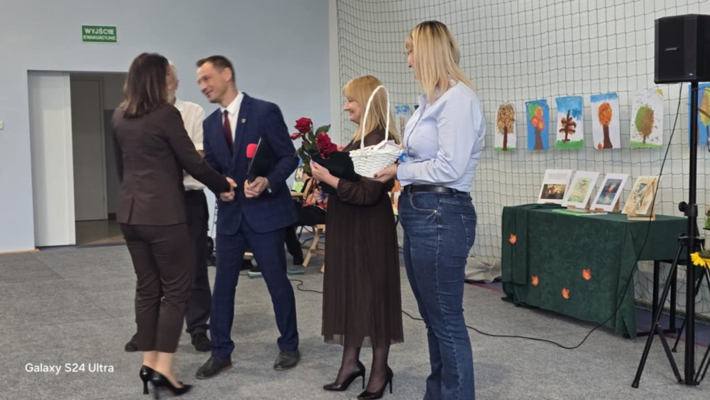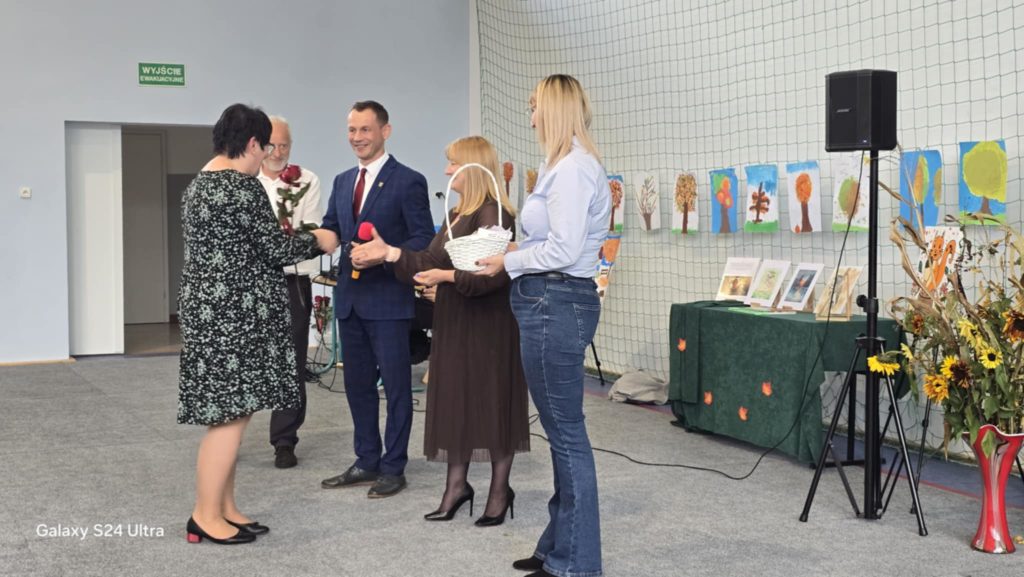 W tym roku obchody DEN w naszej szkole przypadły na dzień 16.10. To święto skłania do refleksji nad rolą nauczyciela, wychowawcy i pracownika szkoły w życiu młodych ludzi. W żartobliwy sposób ocenili ją uczniowie kl. 7 i 8, wspierani przez uczniów kl. 4 oraz chór kl. 5 przygotowany przez p. Ewę Chrebor. Wisienką na torcie okazał się rozkoszny występ dzieci z 5latków i klasy 0 pod opieką p. Pauliny Zagalskiej i Aleksandry Kucharskiej. Z kolei nad jesiennym wystrojem sal czuwały p. Anna Komorowska i p. Agnieszka Kiełpińska. W części oficjalnej głos zabrali dyrektor szkoły – p. Marek Kowalski, wójt gminy Rąbino – p. Ryszard Poręba, przewodnicząca rady rodziców – p. Weronika Wojas oraz prezes Oddziału ZNP w Świdwinie – p. Narcyza Juszczak. Wójt gminy Rąbino p. Ryszard Poręba wraz z dyrektor CUW w Rąbinie – p. Anną Chrzanowską – Rząsa wręczyli p. Katarzynie Pedrycz nagrodę za zaangażowanie, pasję oraz cierpliwość w kształtowaniu młodych umysłów. Panie – p. Agnieszka Kiełpińska i p. Monika Pietraszewska otrzymały nagrody specjalne wójta gminy za sukcesy sportowe i egzaminacyjne uczniów. Na uroczystości nie zabrakło też szacownych emerytów, przewodniczącego rady gminy – p. Grzegorza Chołuja i radnych gminy oraz dyrektor OKiB – p. Beaty Dżuły.