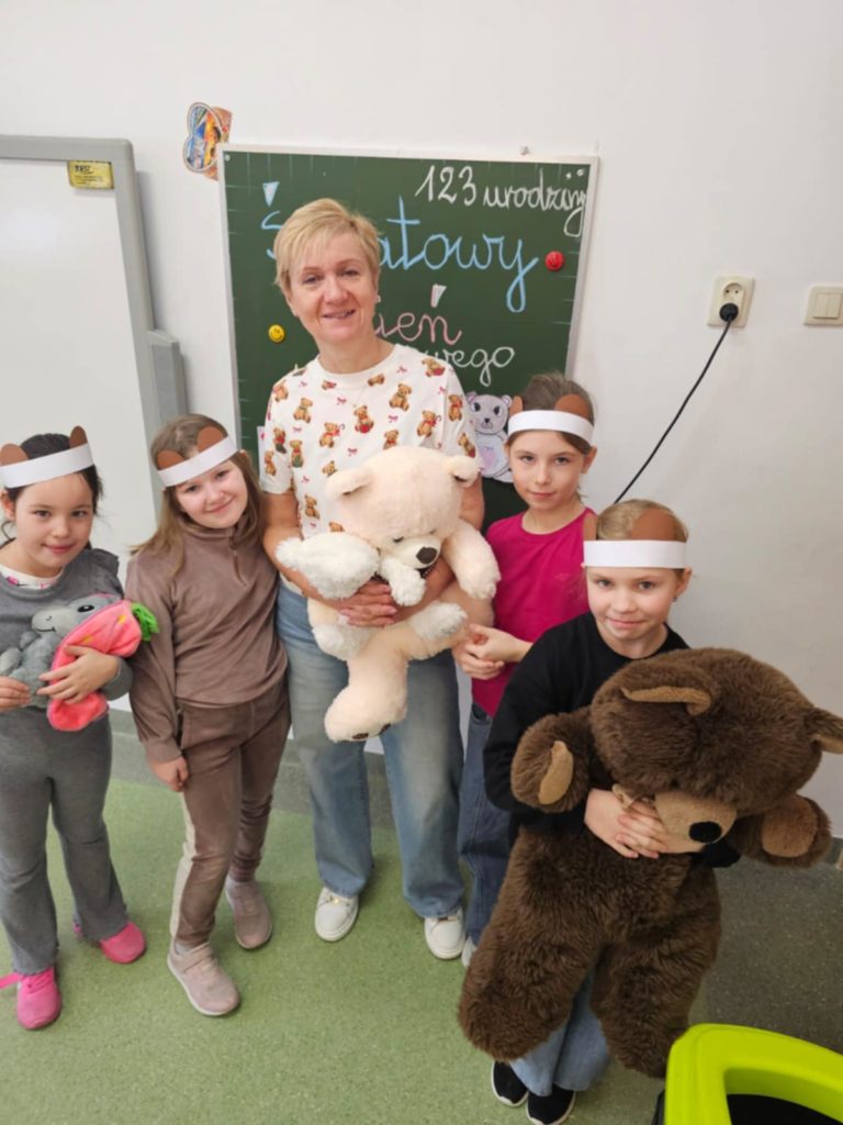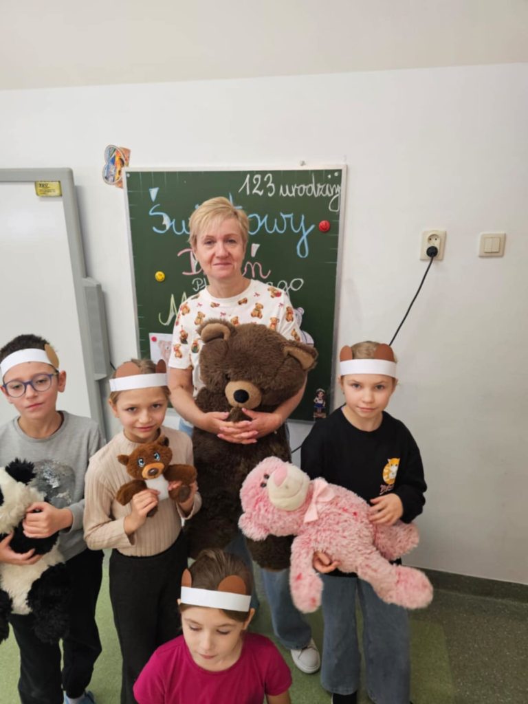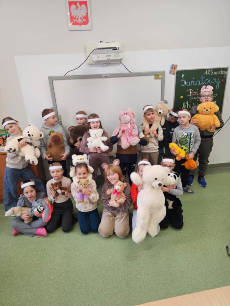 W ramach obchodów Światowego Dnia Pluszowego Misia dzieci z klasy II przygotowały ciekawostki o misiach, czytały fragmenty książek, w których bohaterami są misie, obejrzały bajkę pt.”Miś Uszatek”, oraz rozwiązywały zagadki. Następnie w zespołach rysowały misie. Na zakończenie każde dziecko otrzymało słodki podarunek. Całe wydarzenie przebiegało w radosnej i przyjemnej atmosferze.