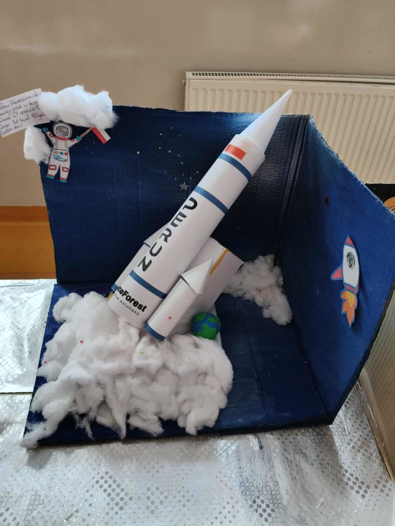 Tematyka tego dnia obejmowała Kosmos. Uczniowie wykonali prace, które zaprezentowali swoim młodszym i starszym kolegom, mogli zapoznać się z życiorysem naszych astronautów, wzięli udział w konkursie wiedzy.