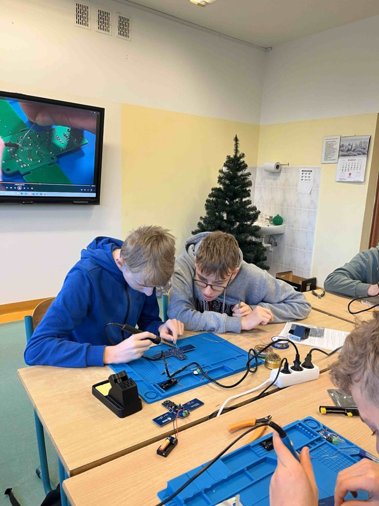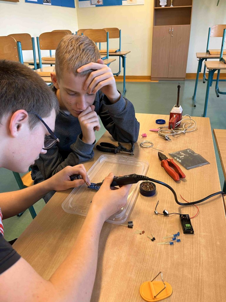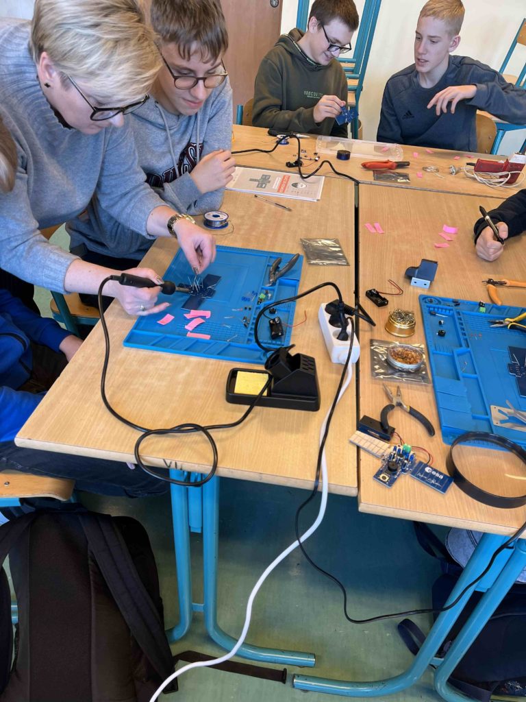 Uczniowie klasy VIII przystąpili do projektu „Klucz do Kosmosu”, który jest jednym z elementów Ogólnopolskiego Programu Edukacyjnego dla misji IGNIS, którego stworzeniem i realizacją zajmuje się Polska Agencja Kosmiczna. Celem projektu jest wsparcie procesu kształcenia umiejętności inżynieryjnych wśród polskiej młodzieży szkolnej, wykorzystując potencjał historycznego momentu – realizacji pierwszej polskiej misji na Międzynarodową Stację Kosmiczną. Z otrzymanych zestawów uczniowie zmontowali klucz telegraficzny. Nasz astronauta Sławosz Uznański-Wiśniewski, również zmontował taki układ, a nagrana przez niego instrukcja posłużyła uczniom za wzór. Taki sam klucz telegraficzny, jak w zestawach edukacyjnych, poleciał wraz z naszym astronautą na Międzynarodową Stację Kosmiczną!