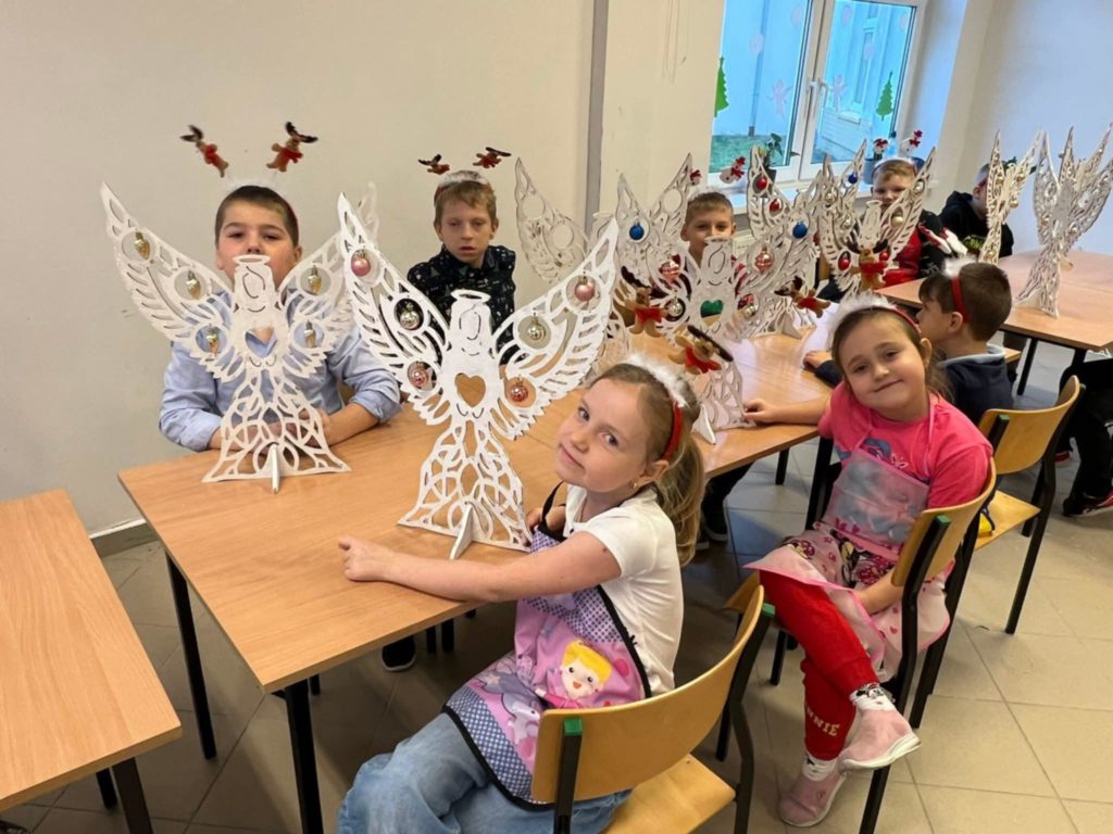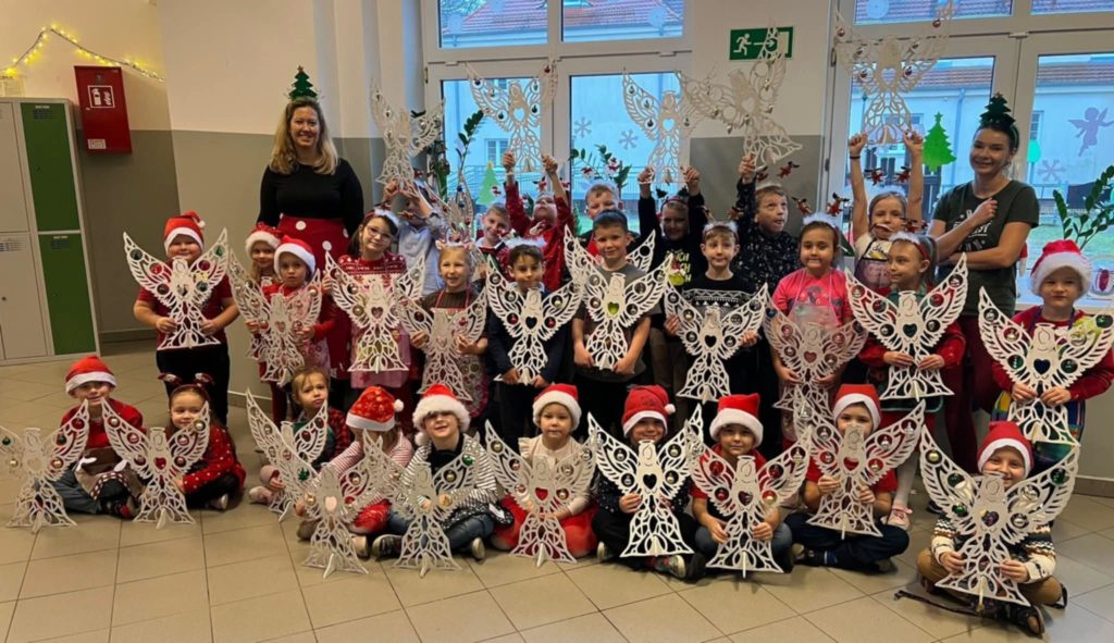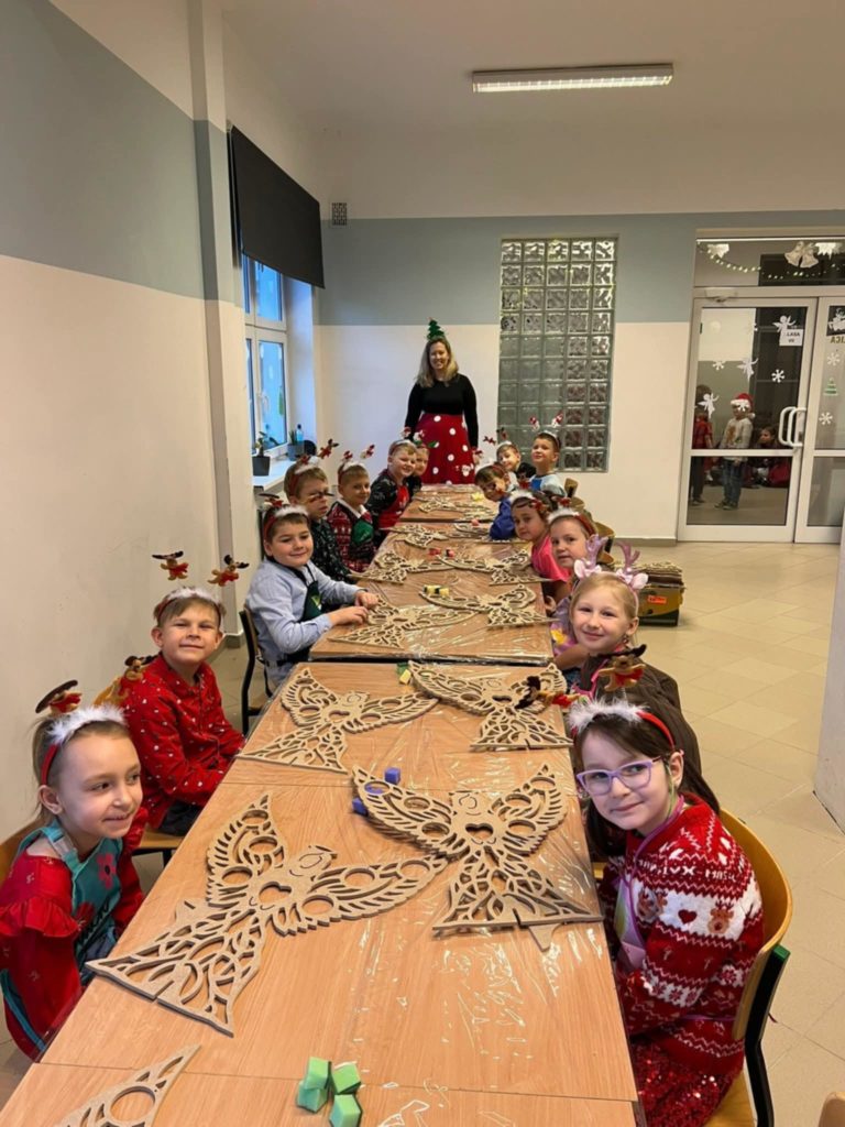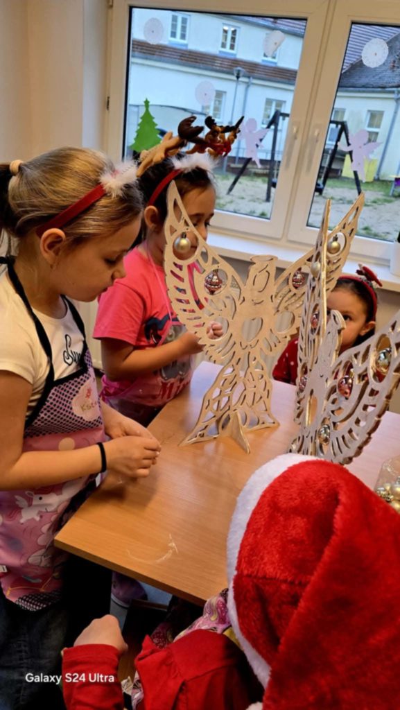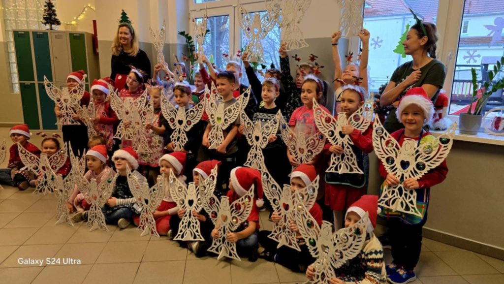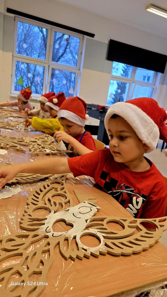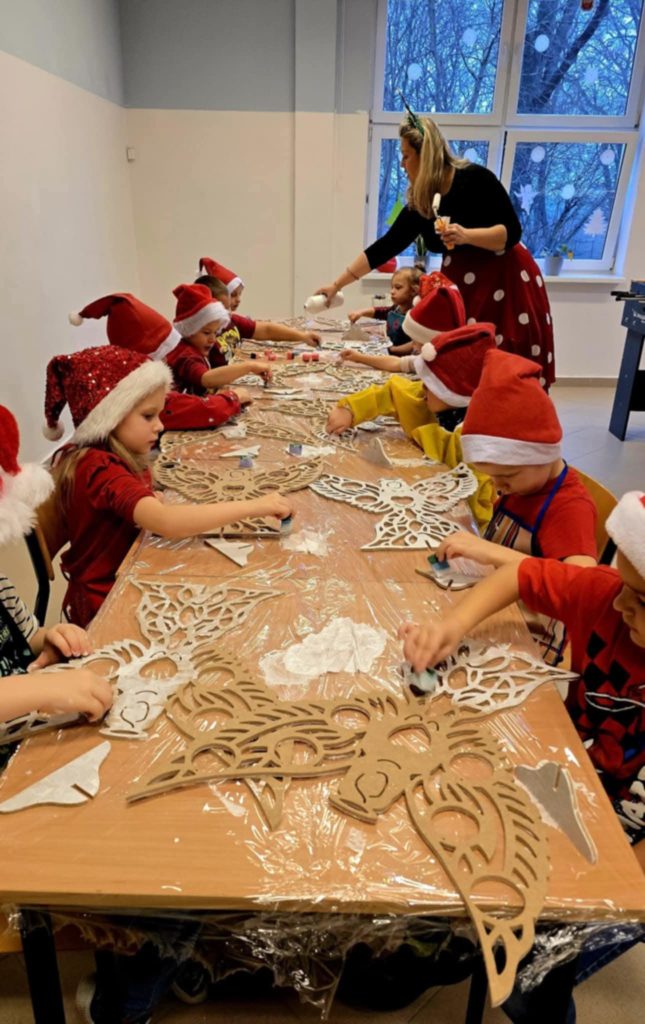 Z okazji Mikołajek dla dzieci z przedszkola – grupa 5 latki oraz Uczniów klas 1-3 odbyły się radosne warsztaty świąteczne , które wprowadziły najmłodszych w magiczny klimat nadchodzących Świąt. Uczestnicy mieli okazję własnoręcznie pomalować anioły, wykorzystując do tego farby i własną wyobraźnię. Swoje prace udekorowali bombkami. Stworzyli w ten sposób barwne i wyjątkowe ozdoby, które zabrali ze sobą do domów. Warsztaty były doskonałą okazją do rozwijania kreatywności i wspólnego przeżywania przedświątecznej radości w szkolnej atmosferze.